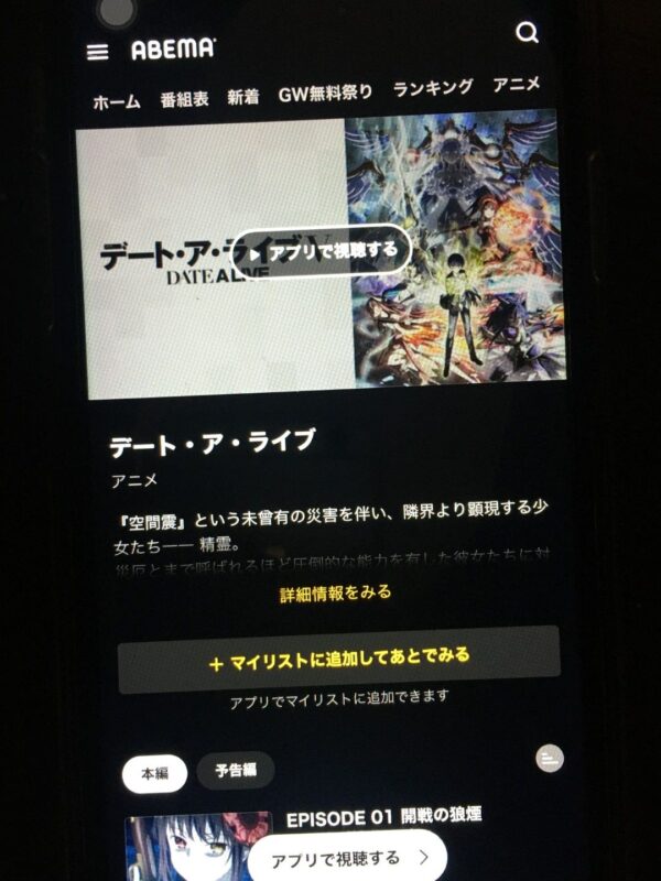 また、ABEMAは独自のオリジナル動画やコンテンツがあり、アニメ「デート・ア・ライブⅤ」以外も視聴できます。