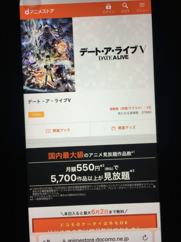 初回お試し期間が14日間あり、アニメ「デート・ア・ライブⅤ」の配信もありフルで見ることができます。