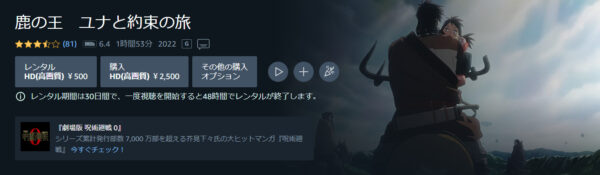Amazonプライムビデオでも映画「鹿の王 ユナと約束の旅」はフルで視聴することができます。