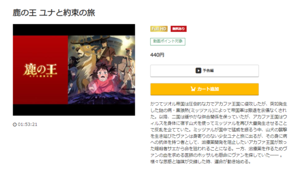 そのポイントを使えば、映画「鹿の王 ユナと約束の旅」をお得に視聴することができます。