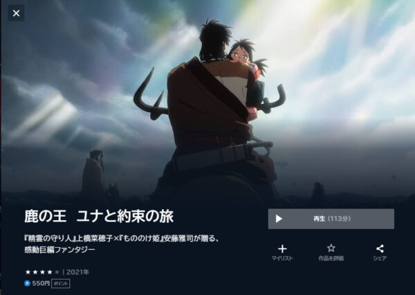 上記の特典が該当していて、アニメ映画「鹿の王 ユナと約束の旅」を配信してる配信サイトを紹介します。