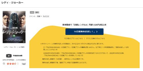 そして、映画「レディ・ジョーカー」はツタヤディスカスで配信しているので、無料でDVDレンタルが可能です。