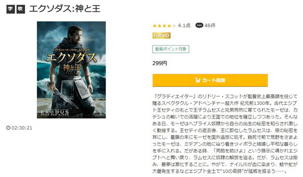 しかし、映画「エクソダス:神と王」はレンタル作品のため、299円かかってしまい無料視聴することができません。