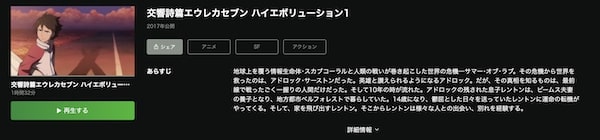 また、「交響詩篇エウレカセブン ハイエボリューション 1」の映画の関連作品も見放題でフル視聴できます。