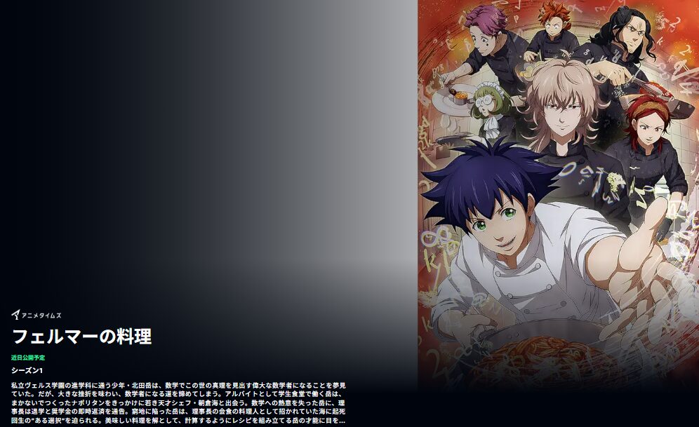 アニメ|フェルマーの料理の動画をフルで無料視聴できる配信サイト