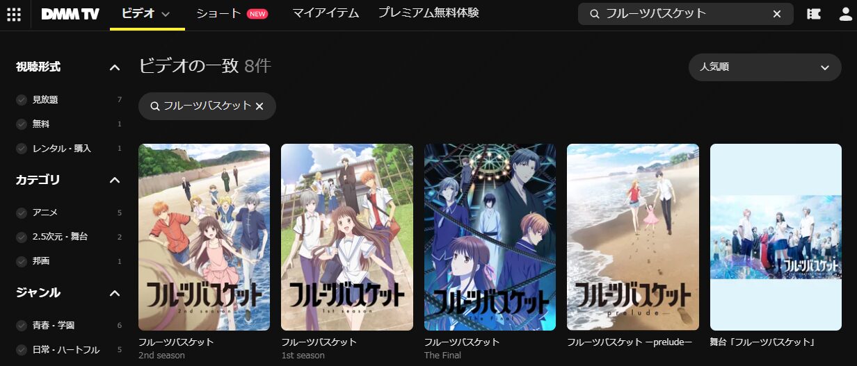 DMM TVでアニメ「フルーツバスケット」シリーズを全話無料で視聴