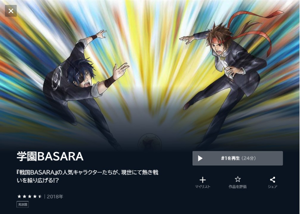 今後、Netflixでアニメ「学園BASARA」の配信を待つより、U-NEXTでアニメ「学園BASARA」は全話配信されているので、お試し期間のあるU-NEXTを利用することをおすすめします。