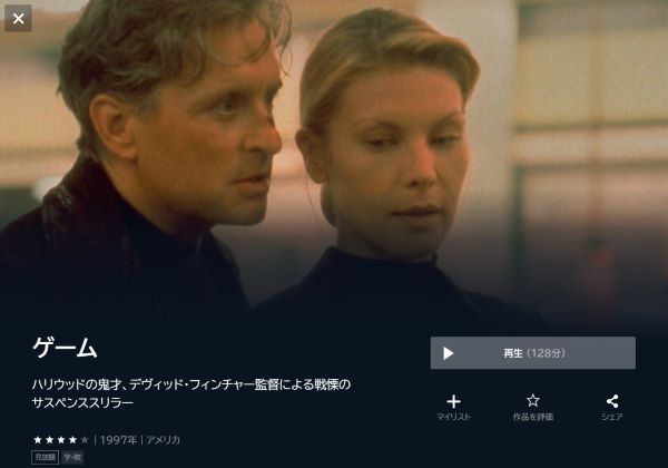 Netflixで映画「ゲーム」を配信しているか調査しました。