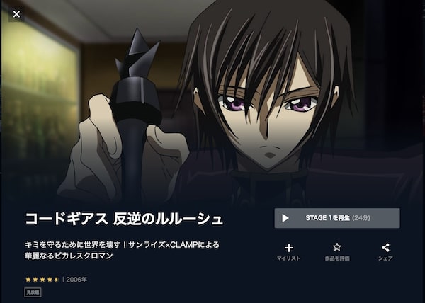 Netflixでアニメ「コードギアス 反逆のルルーシュ」の動画を全話視聴