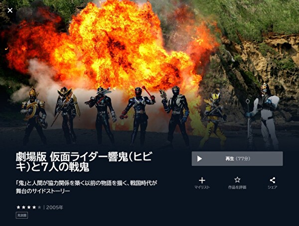 ただ、映画「劇場版 仮面ライダー響鬼と7人の戦鬼」の関連作品の映画は配信しているので、見放題で視聴は可能です。
