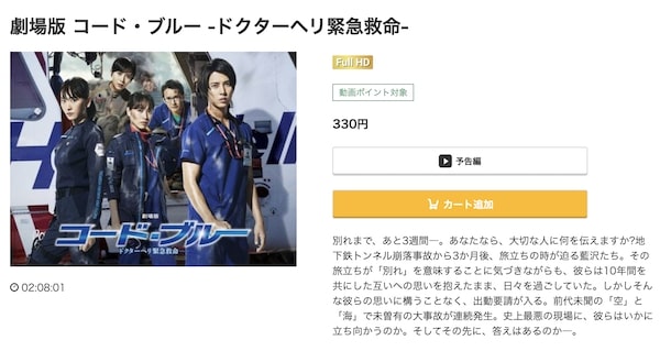 映画「劇場版 コード・ブルー-ドクターヘリ緊急救命-」は330円でレンタル配信してるので、フルで視聴できます。