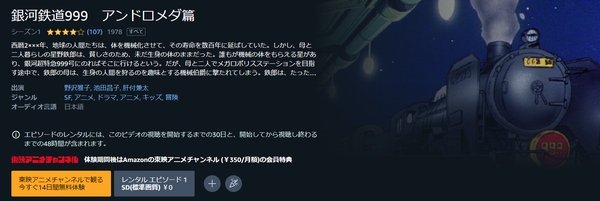 Amazonプライムでアニメ「銀河鉄道999」の動画を全話無料視聴
