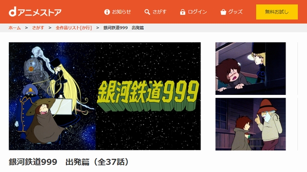 またdアニメストアは、アニメ「銀河鉄道999」のシリーズや関連動画を無料で視聴できます。