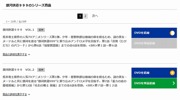 TSUTAYA DISCASでアニメ「銀河鉄道999」の動画をDVDで全話無料視聴