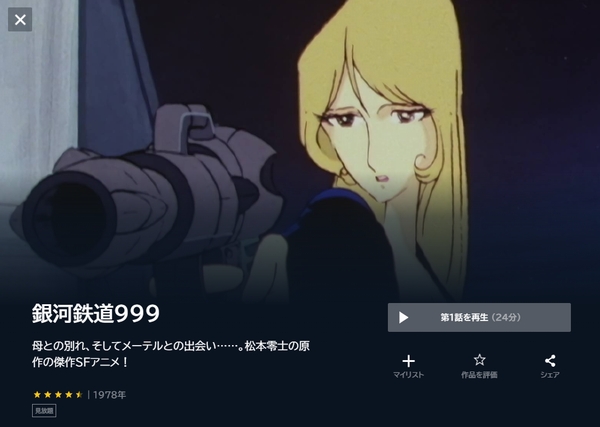 - 「銀河鉄道999」が全話見放題で視聴可能