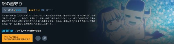 人気の動画配信サイトAmazonプライムでも、アニメ「銀の墓守り」を視聴できるか調査しました。