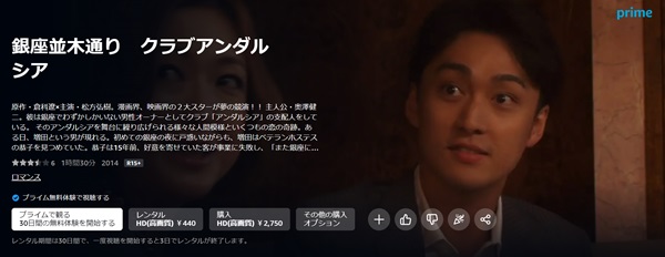 Amazonプライムビデオは、30日間のお試し無料期間があり「銀座並木通り クラブアンダルシア」の映画をフルで視聴することができます。