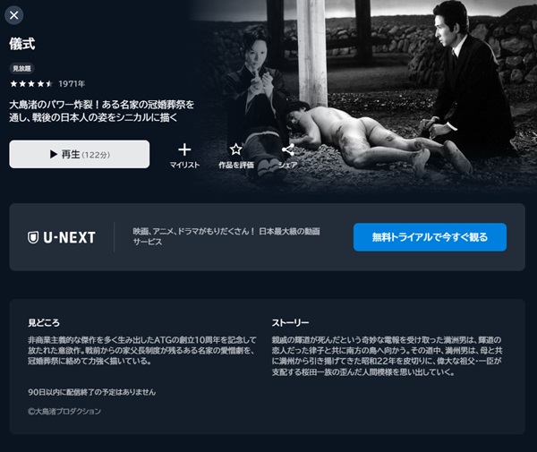 また、映画「儀式」の関連作品の映画もトライアル中にフル視聴が可能です。