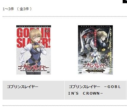 ツタヤディスカスで「ゴブリンスレイヤー」のアニメをDVDでレンタルできるシリーズ作品はこちら。