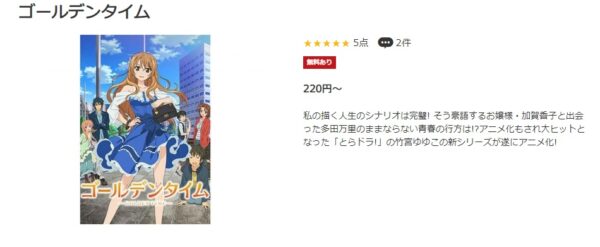 ただ、アニメ「ゴールデンタイム」の関連作品やシリーズ作品は配信しているので、有料となってしまいますが見放題で視聴は可能です。
