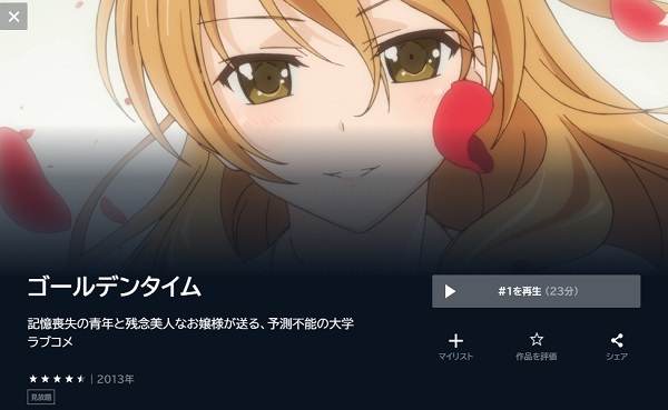 Netflixでは、アニメ「ゴールデンタイム」は配信されていませんでした。
