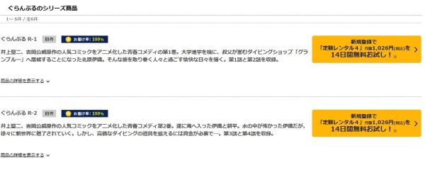 動画配信サービスとは少し違い、DVDレンタルサービスになりお試し期間で、「ぐらんぶる」の動画を全話視聴することができます。