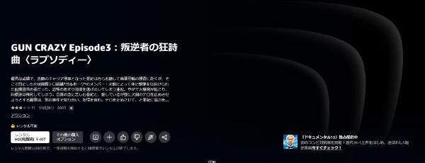 人気の動画配信サービスのAmazonプライムビデオで映画「GUN CRAZY Episode3 叛逆者の狂詩曲<ラプソディー>」の映画がフルで視聴できるか調査しました。