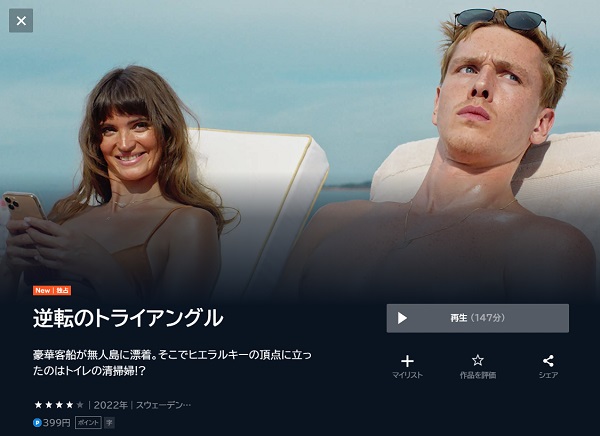 映画「逆転のトライアングル」をU-NEXTで視聴するのに399円のレンタル料金がかかります。