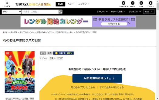 そして、映画「花のお江戸の釣りバカ日誌」はツタヤディスカスで配信しているので、無料でDVDレンタルが可能です。