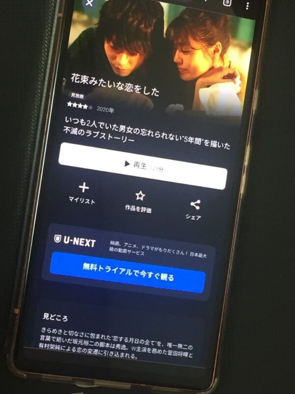 「花束みたいな恋をした」の映画を、小さいスマホ画面ではなく、テレビなどの大きな画面でフルで視聴したい場合はおすすめです。
