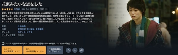 しかし、映画「花束みたいな恋をした」はレンタル作品のため、500円かかってしまい無料視聴することができません。