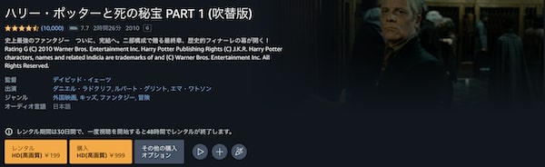 レンタルで「ハリー・ポッターと死の秘宝PART1」の動画を視聴する場合は、レンタル期間もあるのでその点だけ注意してくださいね。