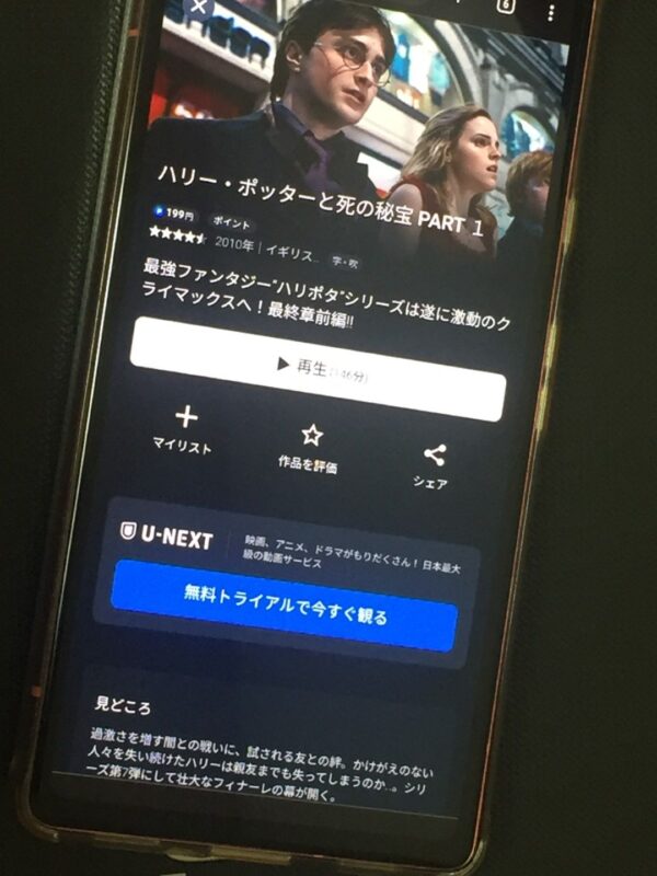 U-NEXTの特徴としては、無料トライアル中に映画「ハリー・ポッターと死の秘宝PART1」の動画を見れるだけではなく色々な映画を見放題で視聴できるのがポイントです。