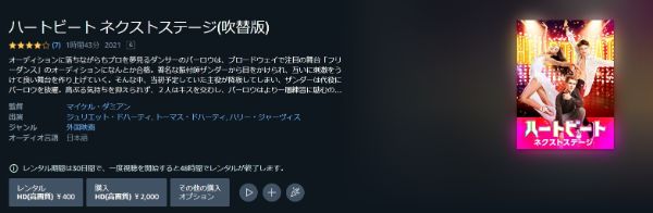 しかし、映画「ハートビート ネクストステージ」はレンタル作品のため、300円かかってしまい無料視聴することができません。