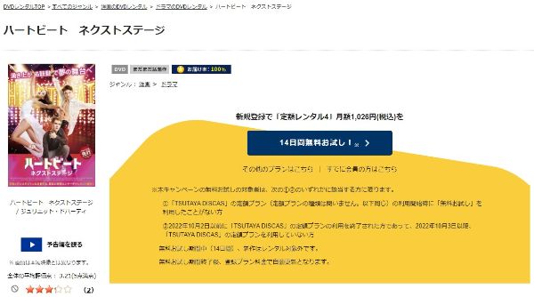 そして、映画「ハートビート ネクストステージ」はツタヤディスカスで配信しているので、無料でDVDレンタルが可能です。