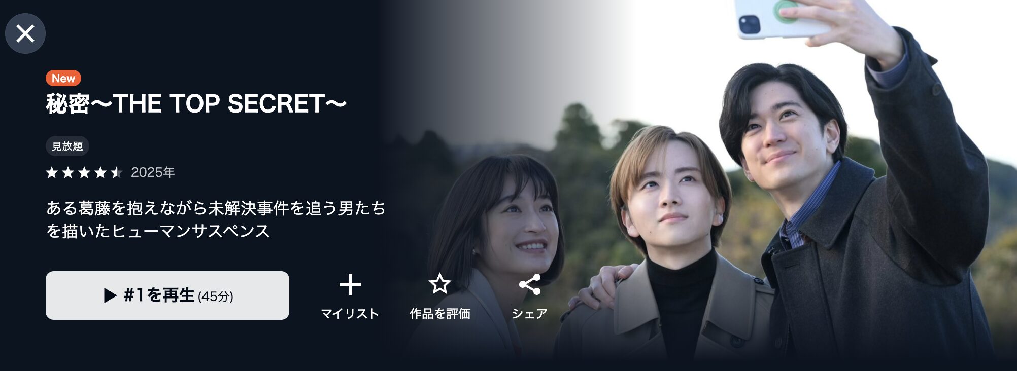 2025年1月から放送された「秘密~THE TOP SECRET~」の動画を視聴できる配信サイトを紹介します。