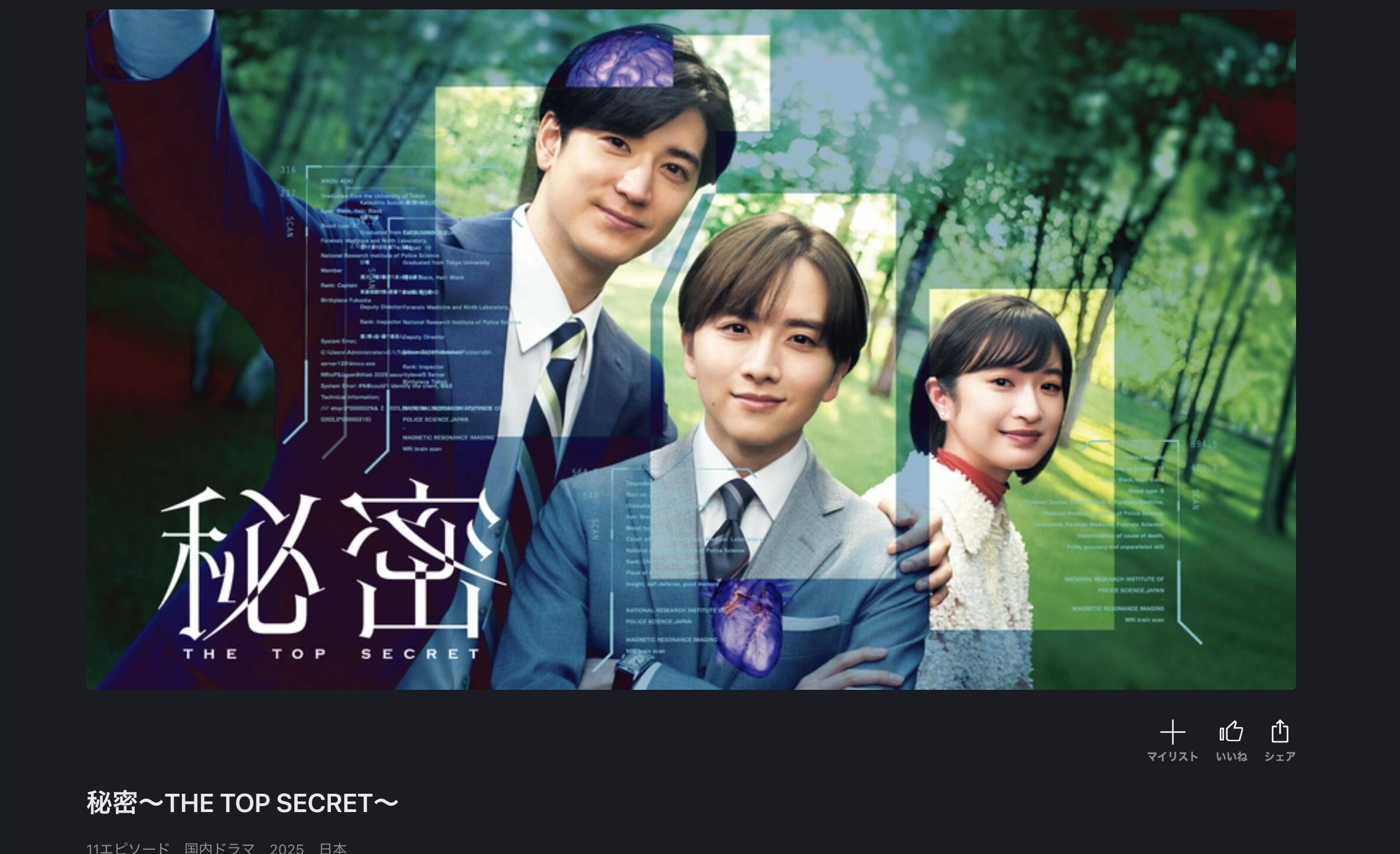 Amazonプライムではドラマ「秘密~THE TOP SECRET~」に出演している中島裕翔の以下のような作品も、一緒に楽しむことができます。