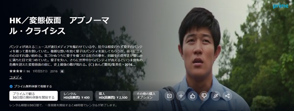 Amazonプライムビデオは、30日間のお試し無料期間があり「HK 変態仮面 アブノーマル・クライシス」の映画をフルで視聴することができます。