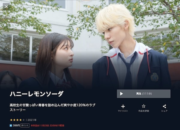 - 映画「ハニーレモンソーダ」がフルで無料視聴。