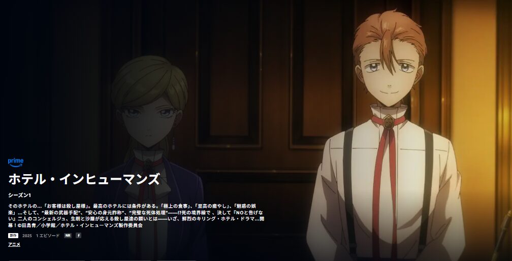 人気の動画配信サイトAmazonプライムでも、アニメ「ホテル・インヒューマンズ」を視聴できるか調査しました。