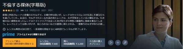Amazonプライムビデオは、30日間のお試し無料期間があり「不倫する裸体」の映画をフルで視聴することができます。