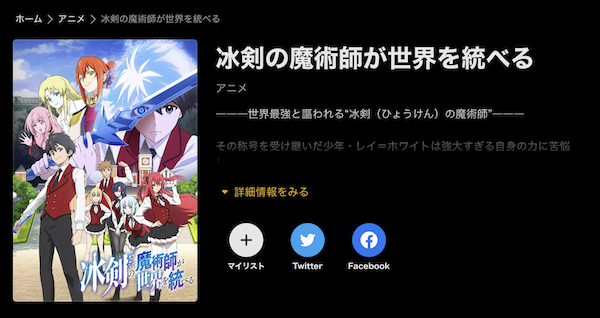 ただ、アニメ「冰剣の魔術師が世界を統べる」の関連作品やシリーズ作品は配信しているので、有料となってしまいますが見放題で視聴は可能です。