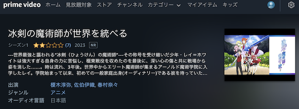 人気の動画配信サイトAmazonプライムでも、アニメ「冰剣の魔術師が世界を統べる」を視聴できるか調査しました。