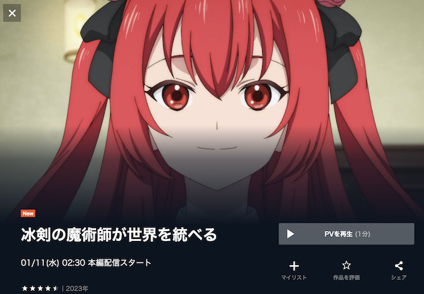 「冰剣の魔術師が世界を統べる」と同じく2023年1月に放送開始したアニメも配信しているので、見逃し配信を視聴することが可能です