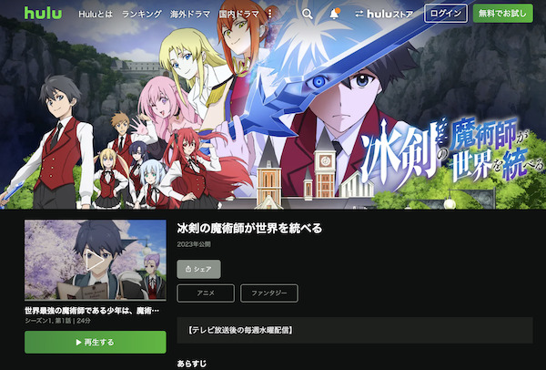 Huluでアニメ「冰剣の魔術師が世界を統べる」の動画を全話視聴