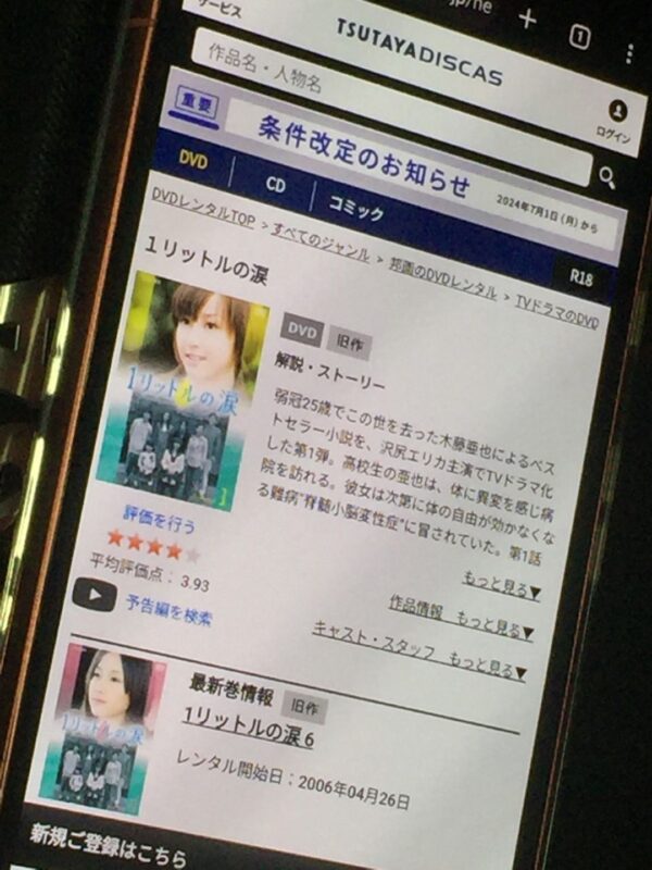 TSUTAYA DISCASではドラマ版だけでなく、映画版「1リットルの涙」もレンタル可能です。