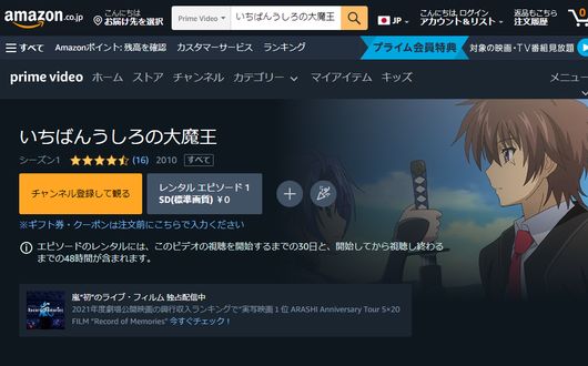 人気の動画配信サイトAmazonプライムでも、アニメ「いちばんうしろの大魔王」を視聴できるか調査しました。