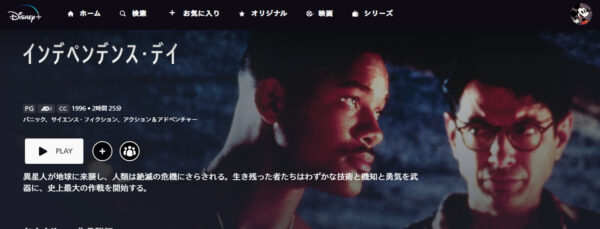 - 「インデペンデンス・デイ」の他のディズニー作品も視聴可能。