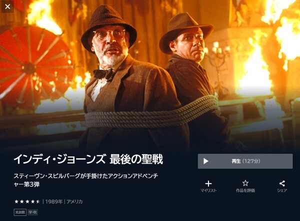 music.jpで映画「インディ・ジョーンズ 最後の聖戦」をフルで無料視聴