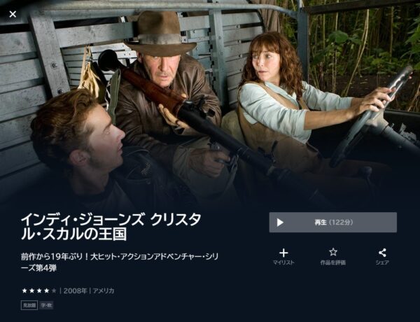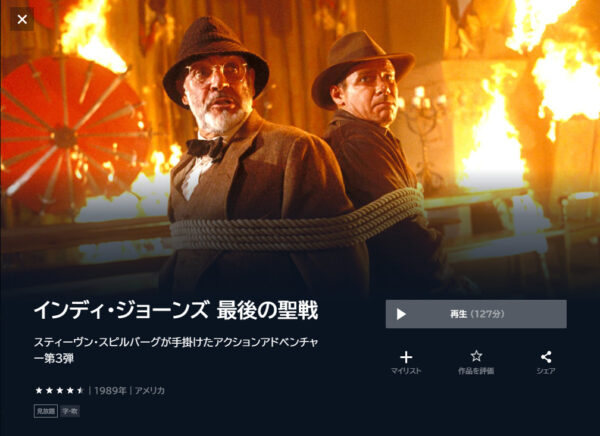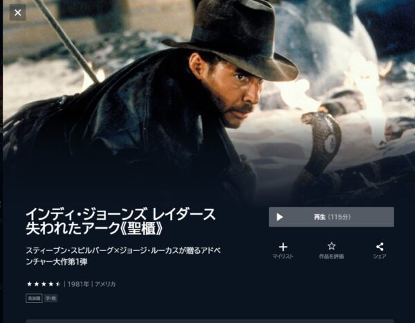 - 「インディ・ジョーンズ」が見放題でフル動画を視聴可能